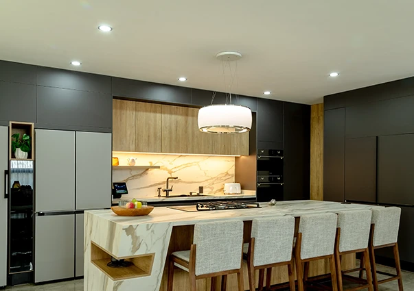 Cada detalle, cada módulo y cada acabado cuentan una historia: la tuya. Descubre cómo podemos llevar innovación, belleza y funcionalidad a tu hogar, creando un espacio donde las conexiones, los sabores y los momentos especiales florecen.